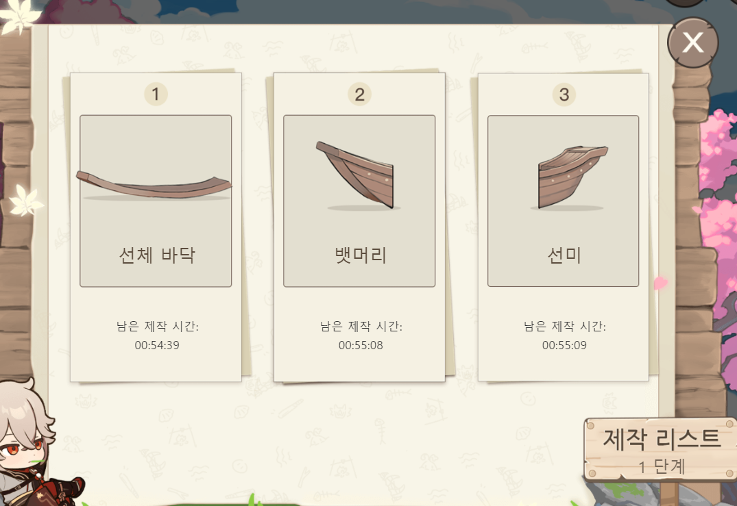 작은 배 제작을 완료하면 게임 내 아이템 보상을 수령할 수 있어~ 보상 수령 시 팝업에서 이벤트를 공유하면 카에데하라 카즈하의 휴대폰 배경화면 1장 획득할 수 있다구~!