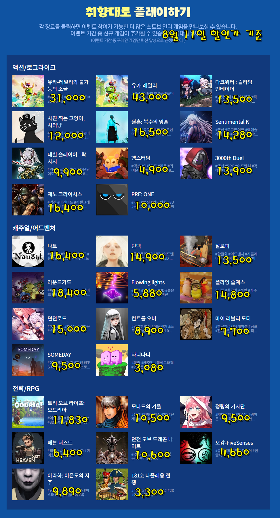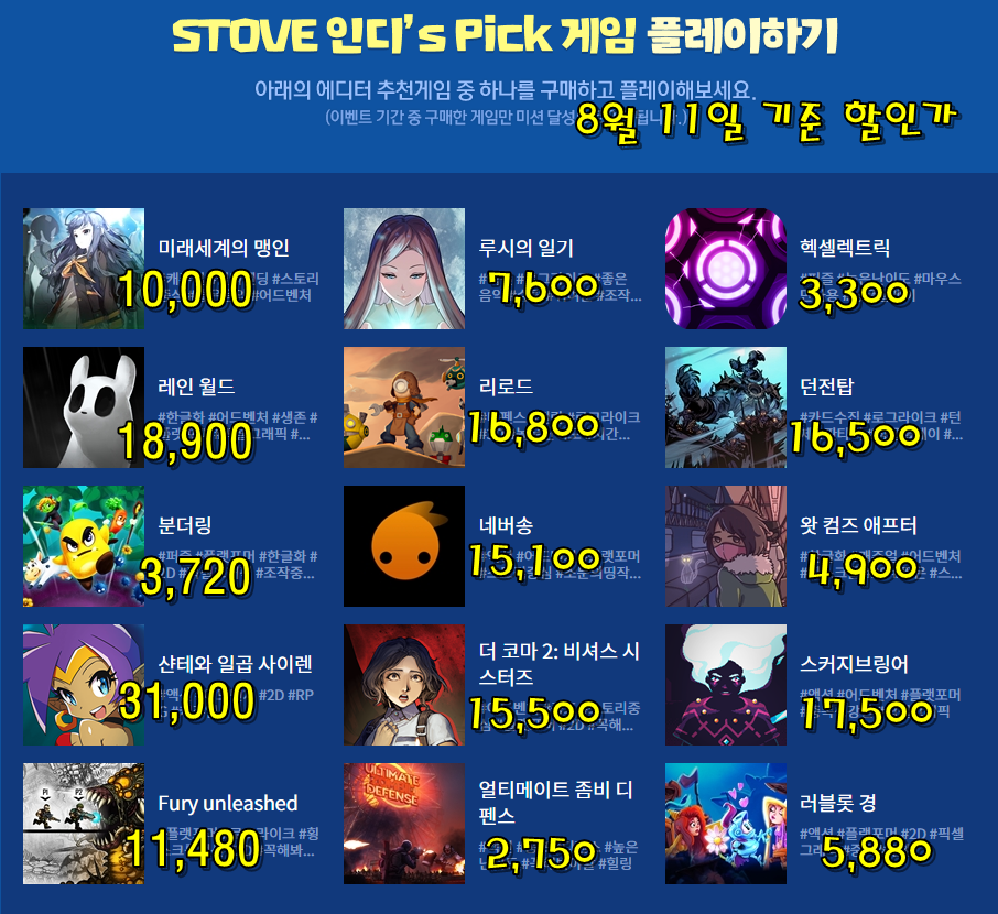 인기게임, 당신을 위한 추천게임, STOVE 인디'S Pick 게임, 취향대로 플레이