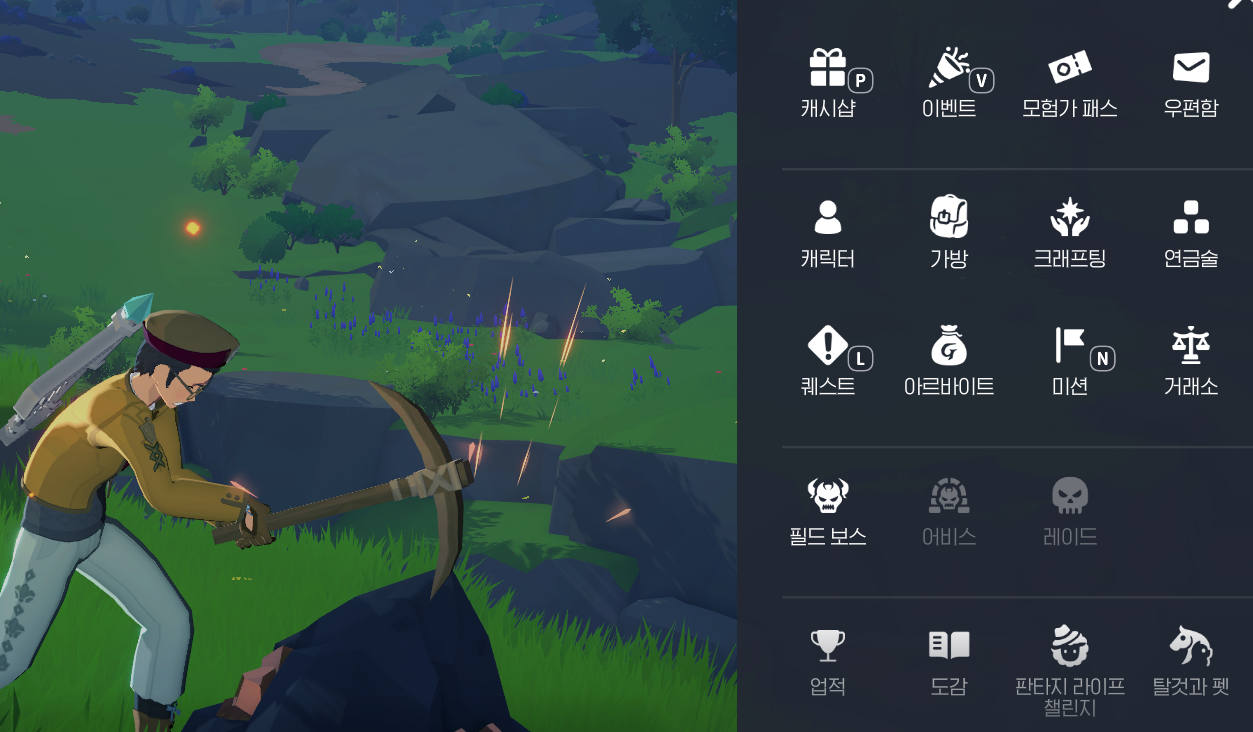 2. 자신이 채집할 카테고리를 파악한다. 광석을 무한으로 캐고 싶다면 돌멩이다