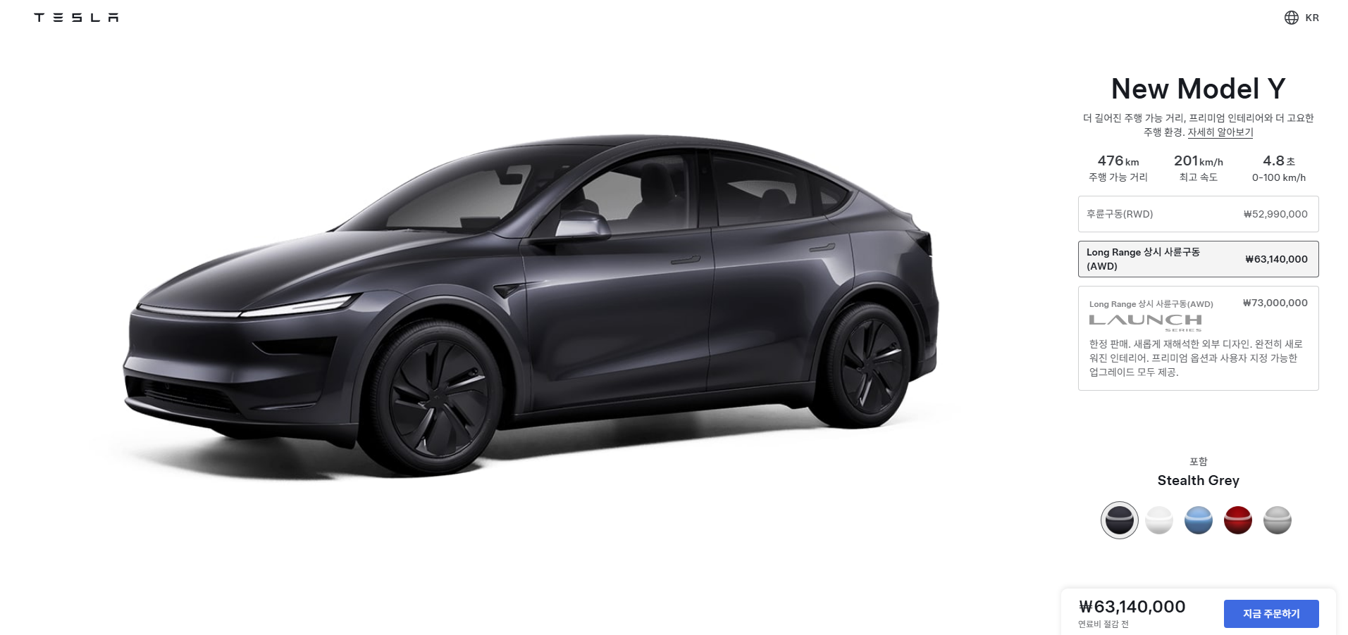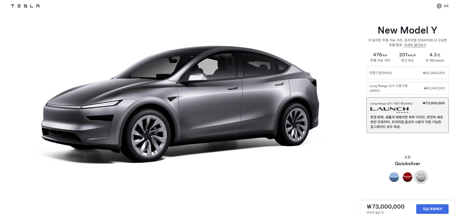 주말에 조금이라도 멀리나가는 일이 있다면 Long Range AWD 모델 6,314만원짜리를 구매하는 것을 추천한다. RWD와 비교하면 제로백이 1초 이상 차이나는데, 1초가 생각보다 크다. 테슬라 오너들 사이에서 롱롱익선이라는 말이 괜히 나오는게 아닌데, 제로백은 물론 주행거리도 70km 여유가 있고, 추후 빗길이나 눈길 운전에 조금 유리한 AWD가 다방면에서 좋다.