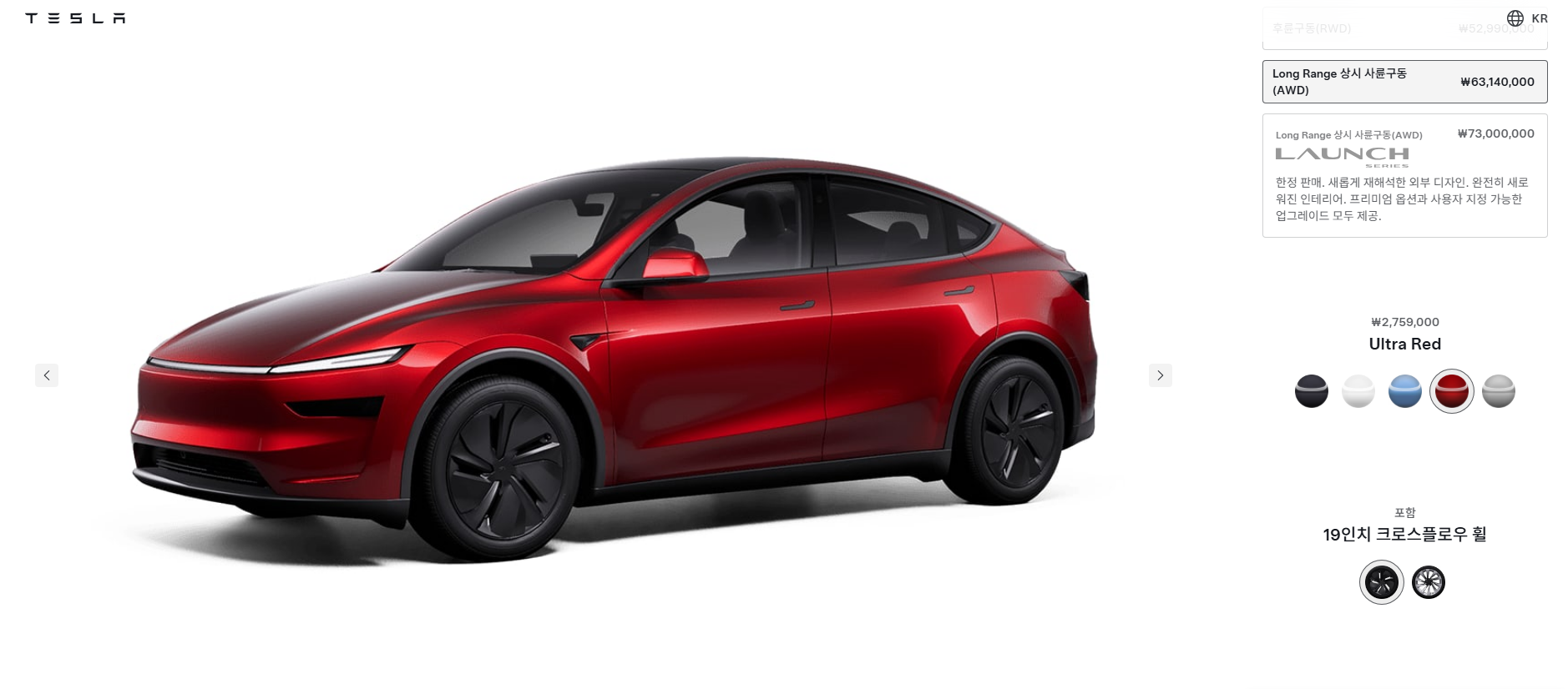 Tesla New Model Y 3종 비교