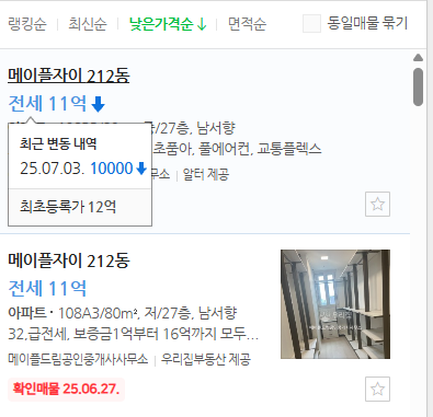 잠원동 메이플자이가 핫합니다. 왜냐고요? 국평 전세가 매매가가 3~40억인데 전세가 10억이나 됩니다. 여기는 매일매일 전세 가격이 떨어지고 있습니다. 벌써부터 위기감지를 느끼고 전세 가격을 1억이나 내렸는데 누가 1억내고 11억 들어갈까요. 대부분 조합원 매물이라는데 그분들은 버티시길 바랍니다.